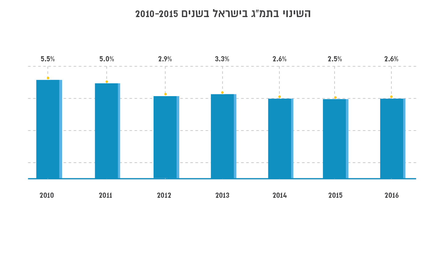 בשנים האחרונות חווה מדינת ישראל האטה בצמיחה – קצב הצמיחה השנתי במדינה ירד מ-5.5% בשנת 2010 ל-2.6% בלבד בשנת 2016[41], כאשר הכלכלה הישראלית מתמודדת עם סביבה עולמית המתאוששת באיטיות מהמשבר של שנת 2008 ועם כלכלה גלובלית הנמצאת כבר מספר שנים על סף מיתון[42].