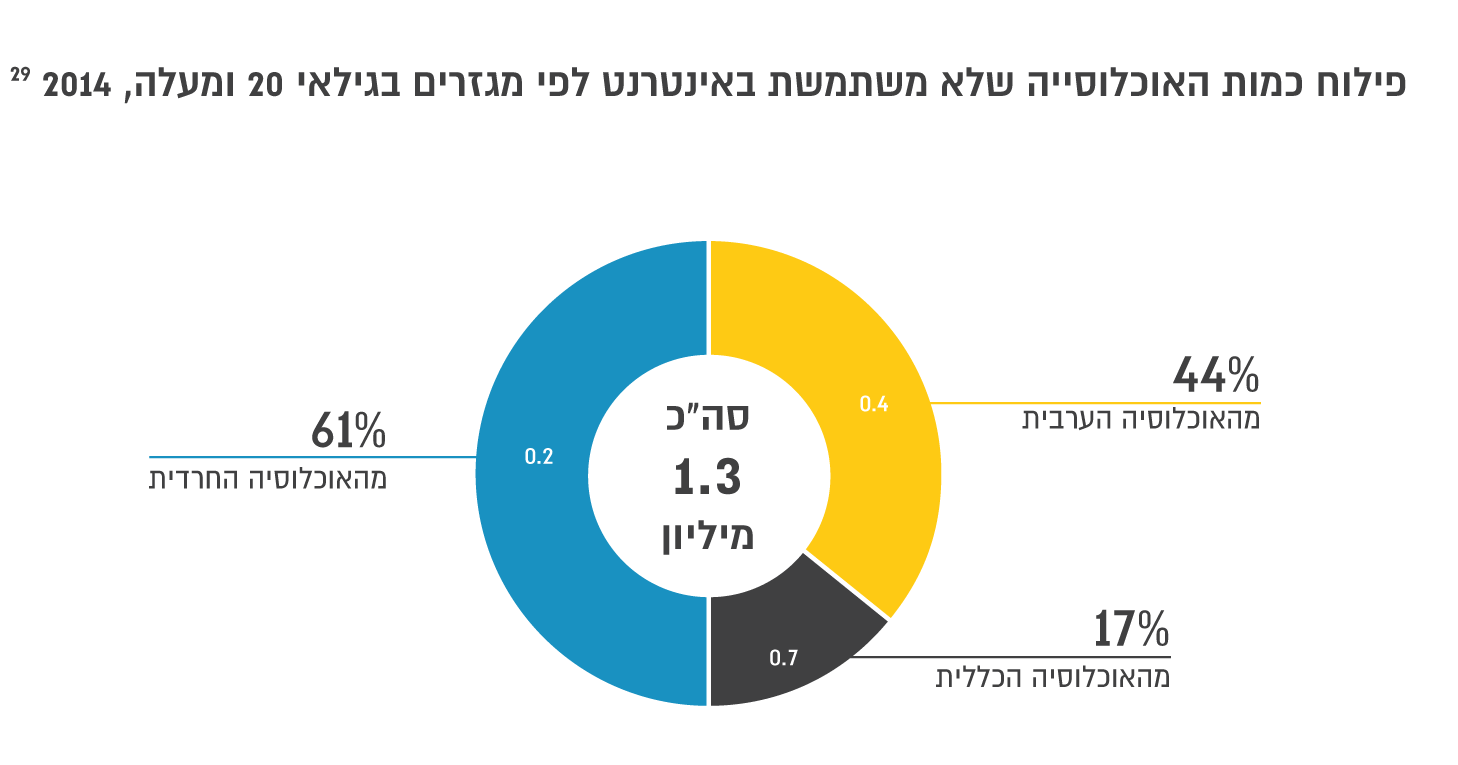 בישראל ישנו "פער דיגיטלי", במסגרתו אוכלוסיות מהפריפריה הגיאוגרפית והחברתית סובלות מנגישות נמוכה יותר לתשתיות מתקדמות וציוד קצה, ומהיעדר מיומנויות דיגיטליות וטכנולוגיות[27]. כמחצית מהאוכלוסייה שאינה משתמשת כלל באינטרנט, משתייכת למגזרים החרדי והערבי. בנוסף, כמחצית מאוכלוסיית האזרחים הוותיקים הם חסרי אוריינות דיגיטלית[28]. אוכלוסיות אלו הם במיקוד העשייה של המשרד לשוויון חברתי. בנוסף, בישראל קיים קשר חזק בין היעדר אוריינות דיגיטלית לאוכלוסיות מסוימות (המגזר החרדי, הערבי, בני 55+ ובעלי הכנסה נמוכה)[29]. אוכלוסיות אלו עלולות לעמוד במצב בו נמנע מהן לקבל שירותים ממשלתיים איכותיים ומקוונים, נמנעת מהם גישה למידע באופן שמגביל אותם מול ספקים, נותני שירות ומעסיקים, נפגעת יכולתם לבצע רכישות חכמות באופן מקוון, וכן מהאפשרות לרכוש כלים מתאימים לשוק התעסוקה המודרני.